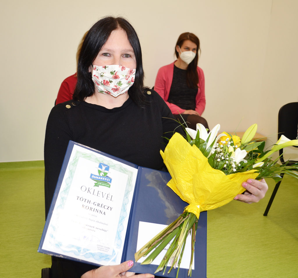 „Az év kisgyermek nevelője” elismerést idén Tóth-Gréczy Korinna vehette át, akinek tevékenységét Szabóné Ónodi Valéria méltatta.