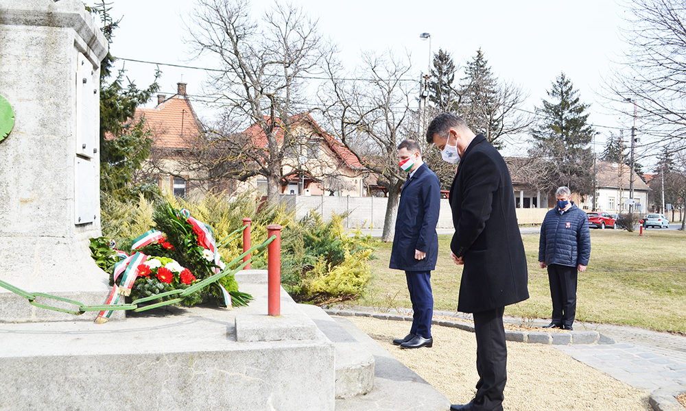 A város Március 15. parkjában emelkedő emlékműnél koszorút helyezett el dr. Tuzson Bence országgyűlési képviselő, Dióssi Csaba polgármester, Sipos Dávid alpolgármester, Nyíri Márton alpolgármester és dr. Molnár György jegyző.