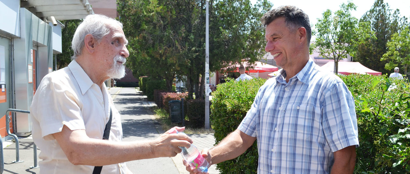 - A IV. Béla király főtéren már van egy párásító, de a város több pontján helyezünk ki párakaput, a játszótereink többségét pedig napvitorlával láttuk el – mondta a városvezető, aki Sipos Dávid alpolgármesterrel, Juhász Ádám alpolgármesteri megbízottal és több önkéntessel együtt osztotta a vizet a Casalgrande téren.