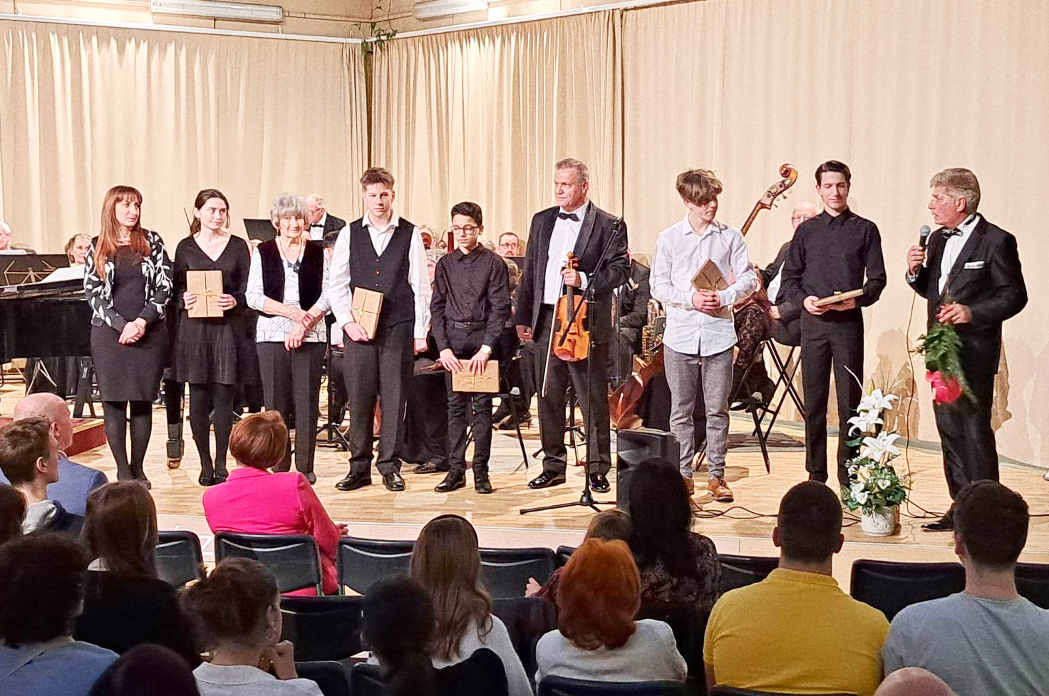 A fiatalok tehetségét és példás szorgalmát dicsérte Farkas Pál, a Dunakeszi Szimfonikus Zenekar karmestere is, aki kiváló művésztársaival együtt örömzenéléssel segítették a szépreményű Somogyvári Zoárd, a Budapesti Veres Pálné Gimnázium tanulója, X. Farkas Ferenc Zongoraverseny (2022) I. díjazottja,