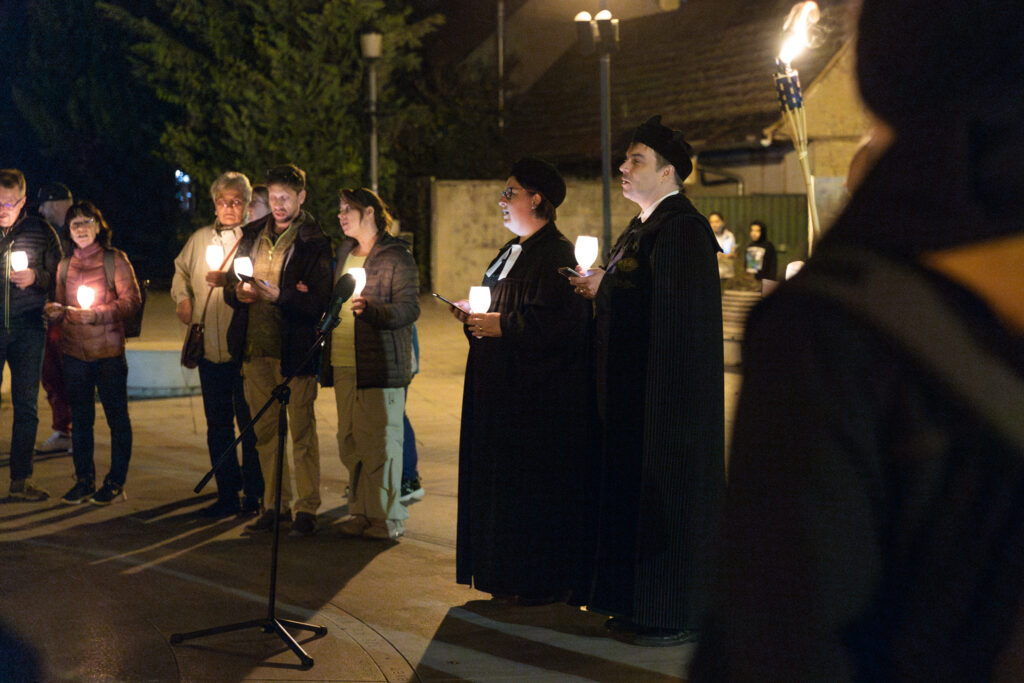 A reformáció 507. évfordulójának napján – az istentisztelet után – dr. Kodácsy Tamás református lelkész és dr. Petriné Chikán Katalin evangélikus lelkész vezetésével a két egyházközség tagjai és a hozzájuk csatlakozó polgárok fáklyákkal vonultak a IV. Béla király főtérre.