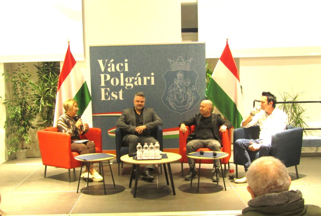 Az októberi Váci Polgári Esten Garay Nagy Norbert festőművész-tanár, Kovács Alfréd cukrászmester, a 2024-es év tortája kisütője és Toldi Tamás szövegíró-énekes volt a díszvendég – virtuális kézcsók a háziasszony főszervezőnek, elismerő kézfogás a házigazdáknak, hogy ilyen helyi, erősen lokálpatrióta érzelmű értékteremtőket is reflektorfénybe állítanak, jobban bemutatva őket az érdeklődő nagyközönségnek.