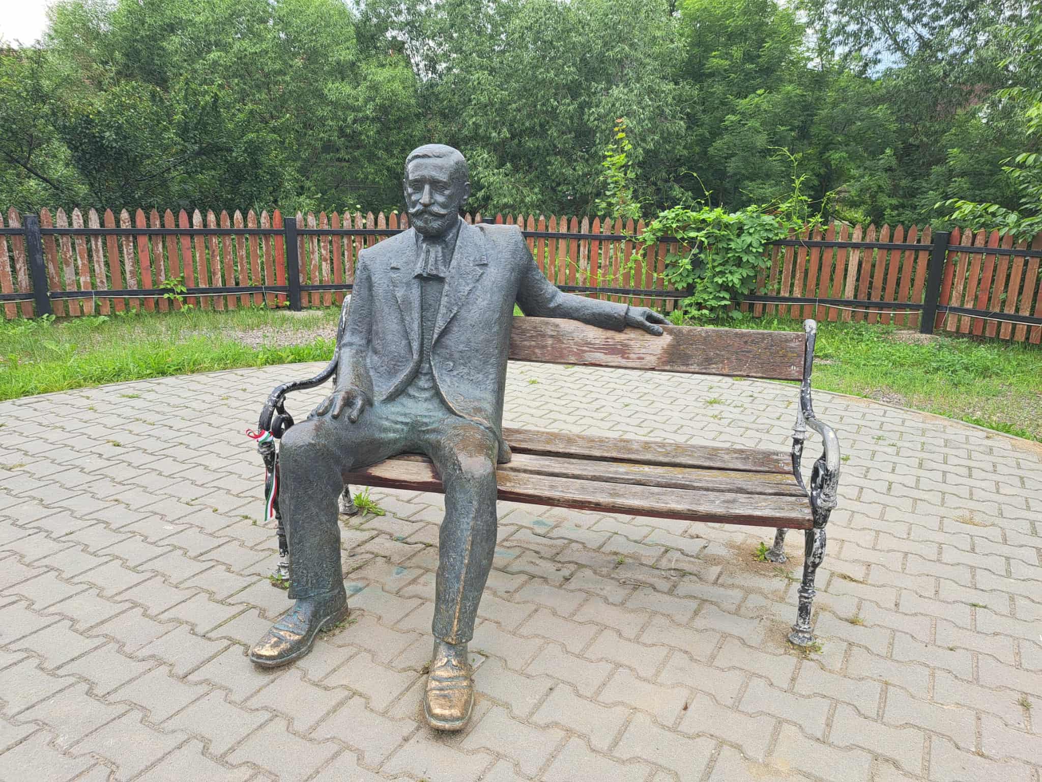 Benedek Elek szobra erdélyi szülőfaluja, Kisbacon közterén (Fotó: KesziPress)