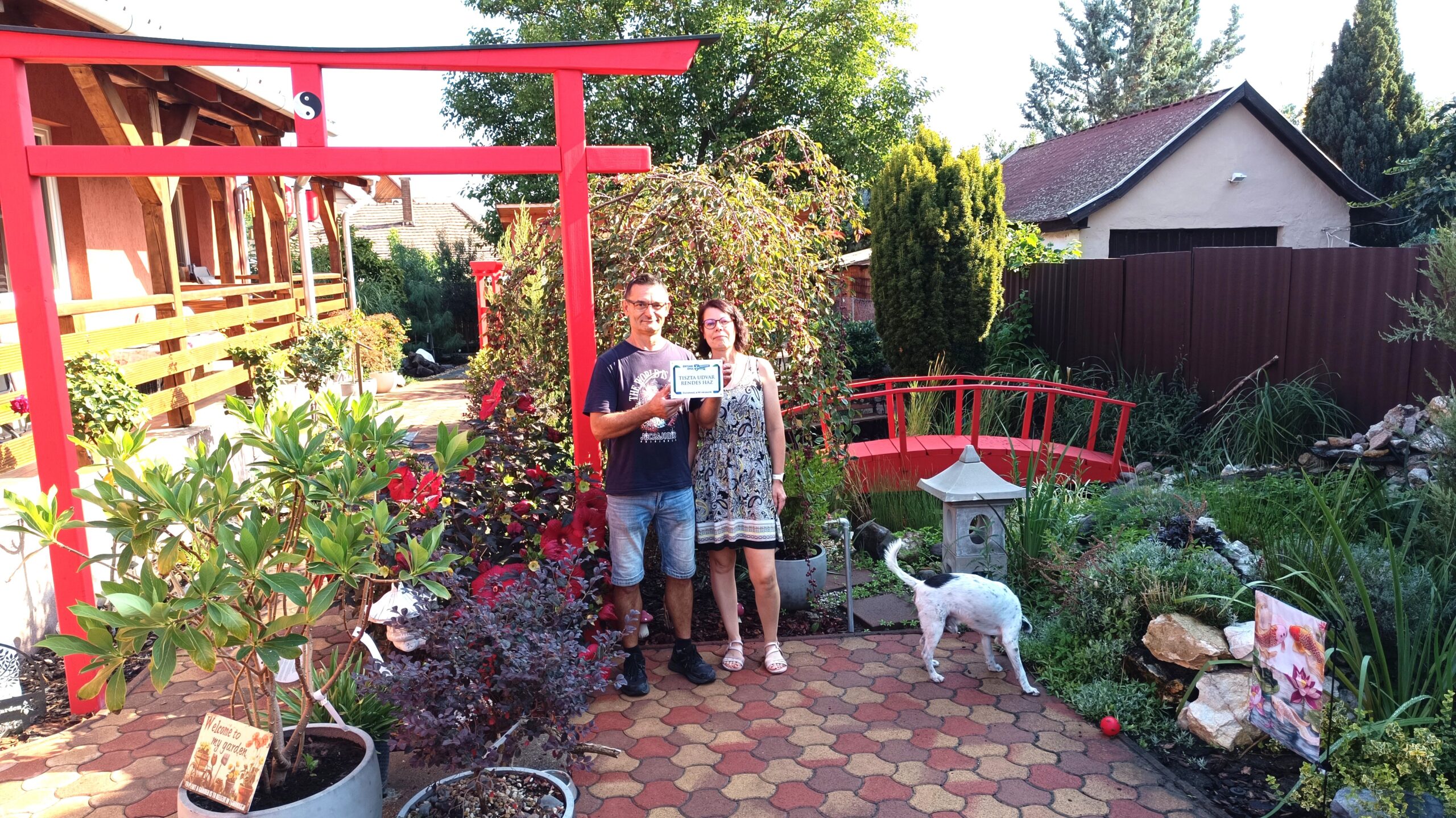 Különleges élményben volt részem, amikor a nyár folyamán „Tiszta udvar, rendes ház” elismerést adhattam át. Már a beadott pályázati dokumentációból látszott, hogy nem mindennapi kertet fogok megnézni, de a helyszínen aztán leesett az állam: Tóth Ferenc és felesége már a kapuban vártak, és ahogy beléptem a kertbe, mintha egy másik világba kerültem volna. Szinte hihetetlen volt, hogy Dunakeszin belül szinte egy másik világot fogok találni.