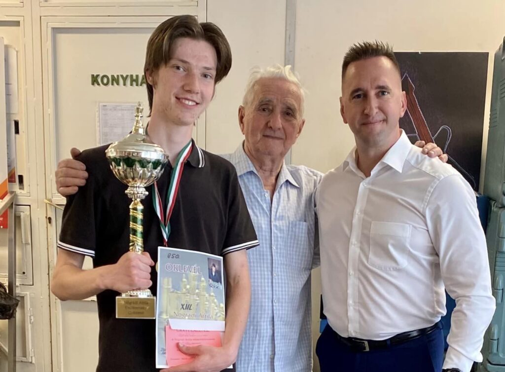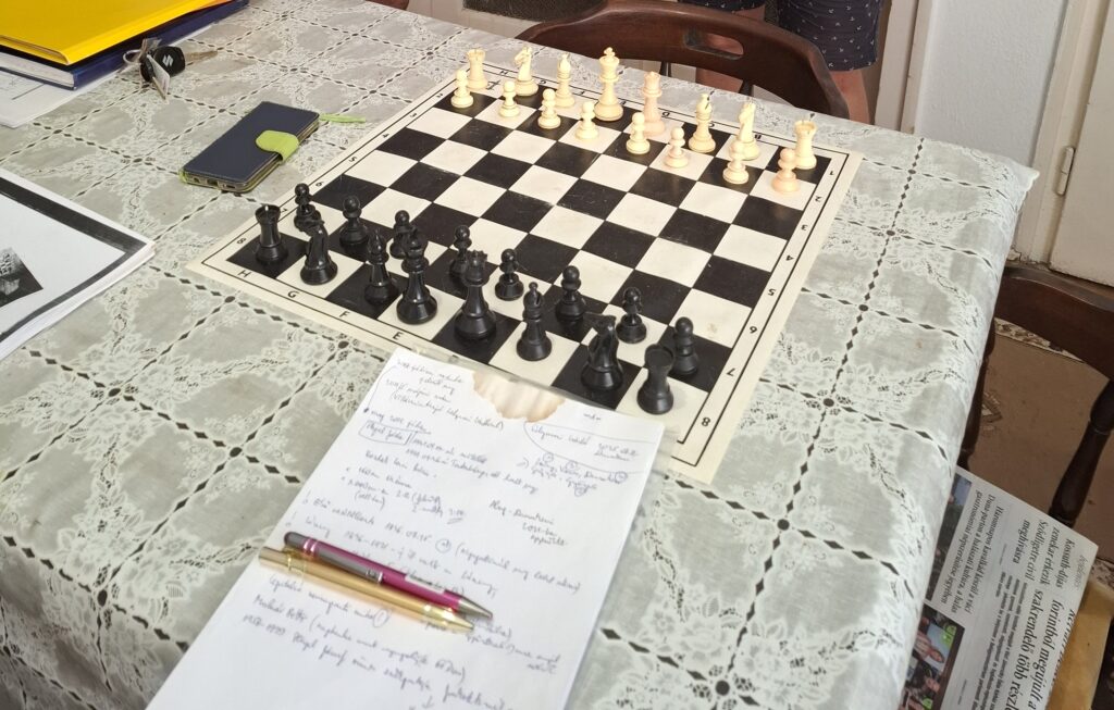 - A díszoklevelet, amely elismeri több évtizedes munkámat és az MSSZ tiszteletbeli tagjául emel 2026. szeptember 26-án kaptam meg. És megint a számmisztika – ugyanezen a napon hunyt el Stugel Jóska barátom. A Pest megyei Sakkszövetségben az elődöm Hoschek Laci bácsi volt. Ő 1957 és 1982 között volt a megyei elnök. Ahogy ő maga nyilatkozta, 1925-ben az Aller képes családi lapban lombfűrésszel sakk-készletet lehetett kivágni, így indult a sakkpályája. Emellett Laci bácsi 1948-tól versenybíróként is tevékenykedett. Sőt, egy alkalommal egy vehemens ifjú (később a Magyar Sakkszövetség elnöke lett) egy vita hevében meglegyintette Laci bácsit, akinek leesett a szemüvege…