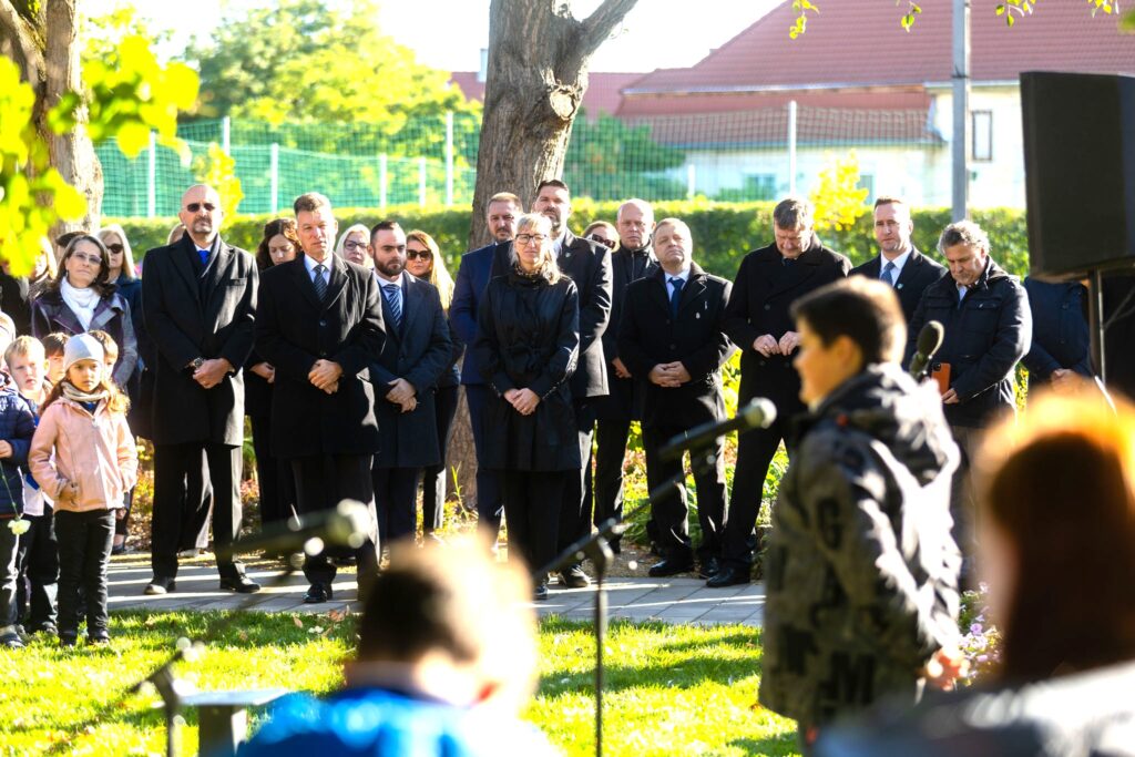 Ma délelőtt itt helyezték el koszorúikat a városi önkormányzat vezetői, az intézmények képviselői, a pártok, a nemzetiségi önkormányzatok és a meghívott vendégek.