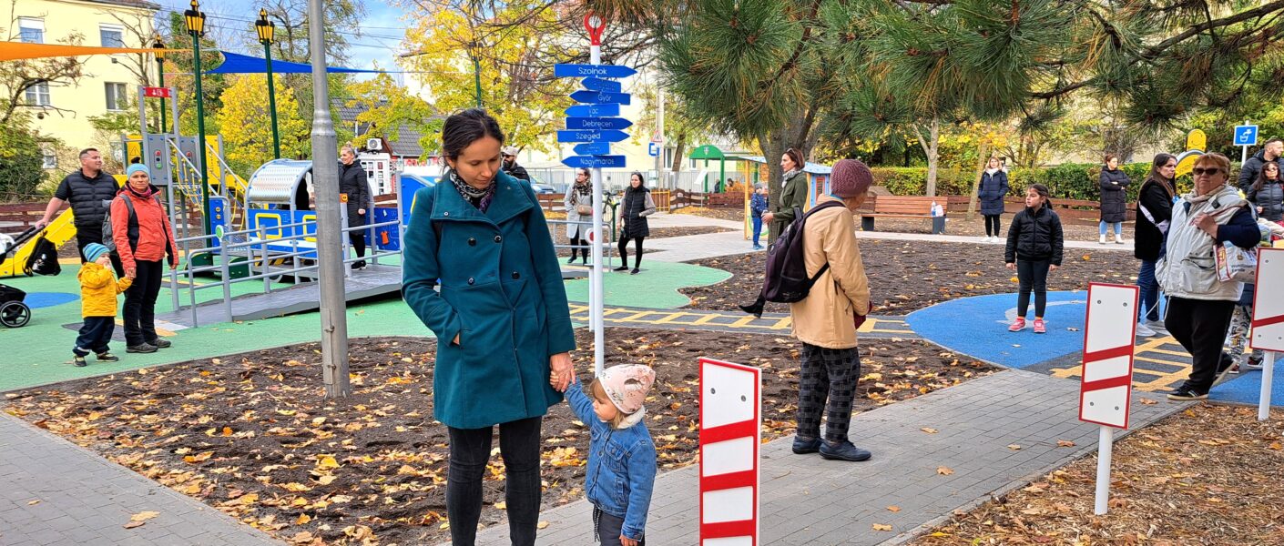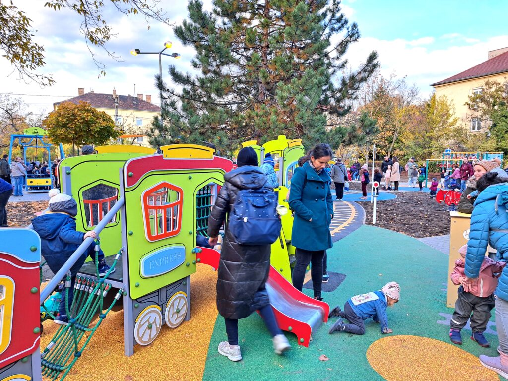 A délelőtti hivatalos átadó után pedig a gyermekek nagy örömére délután Szabó József, a körzet önkormányzati képviselője – Dióssi Csaba polgármester és Nyíri Márton alpolgármester, valamint több önkormányzati képviselő jelenlétében – megnyitotta hazánk egyik legszebb és legnagyob játszóterét a Béke úton, amelyen a tervezők, a helyi szakemberek és az óvodapedagógusok összehangolt és igényes munkájának köszönhetően immár együtt játszhatnak az ép és a mozgássérült fiatalok.