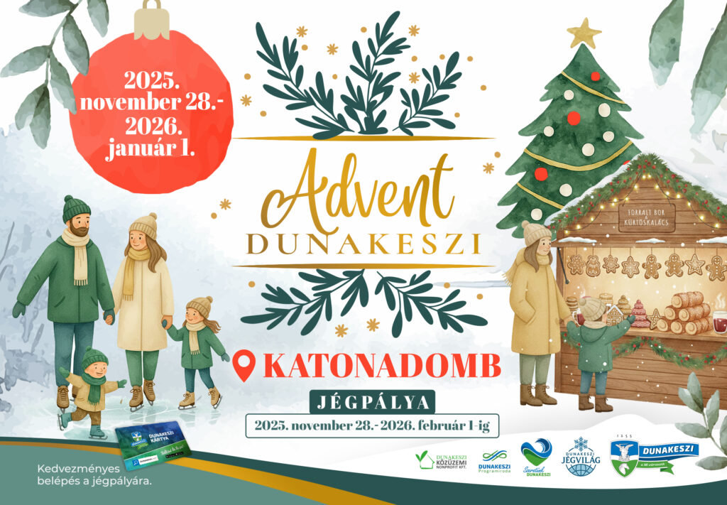Az év legmeghittebb időszaka idén a Katonadombon kel életre – a Dunakeszi Advent programsorozat november 28. és december 21. között vár mindenkit, kicsiket és nagyokat, családokat és barátokat egyaránt. A Katonadomb ünnepi fényárba öltözik, és idén egy különleges újdonság is érkezik: a Dunakanyar legnagyobb jégpályája, jégfolyosóval!