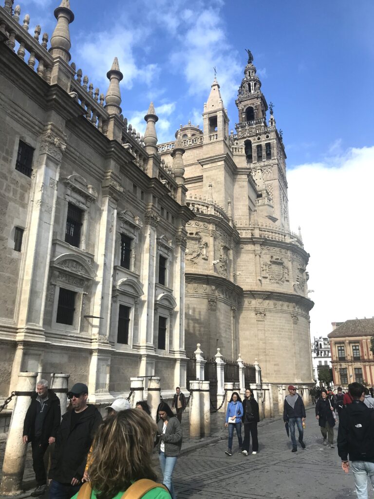 Egyik nap Sevillába látogattunk. A napunk fénypontja a monumentális sevillai katedrális megtekintése volt, amely a világ harmadik legnagyobb gótikus temploma. Különleges élményt nyújtott a Giralda torony meghódítása is: a régi minaretet rámpás feljáraton lehet megközelíteni, így a folyamatos emelkedőn haladva lassan tárult fel előttünk a város. A torony tetejéről lélegzetelállító kilátás nyílt Sevilla történelmi központjára, a szűk utcácskákra és a környező modern városrészekre.