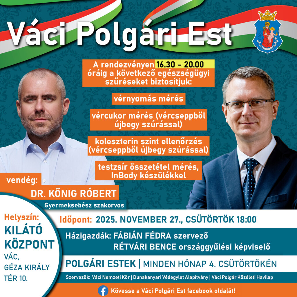 Ne felejtsék, november 27-én, 16:30 órától Váci Polgári Est a Kilátó Központban!