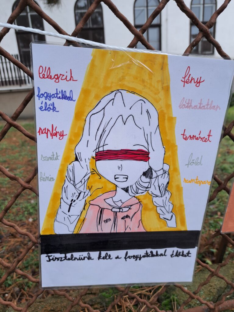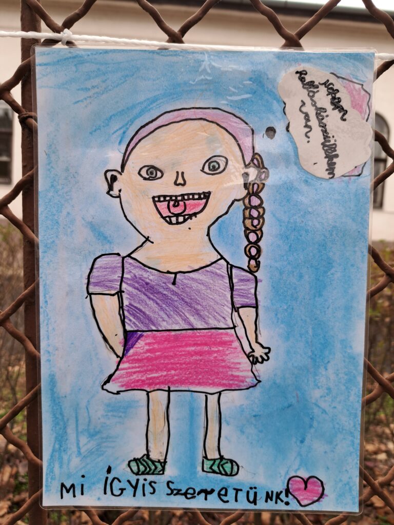 Ebben nagyon sokat segíthet, ha az érdeklődők megtekintik az egykori Eszterlánc Óvoda kerítésén kifüggesztett rajzokat, melyek megdöbbentő őszinteséggel tárják elénk a gyermekek érzékenységét és az őket körülvevő „világ” iránti fogékonyságukat.