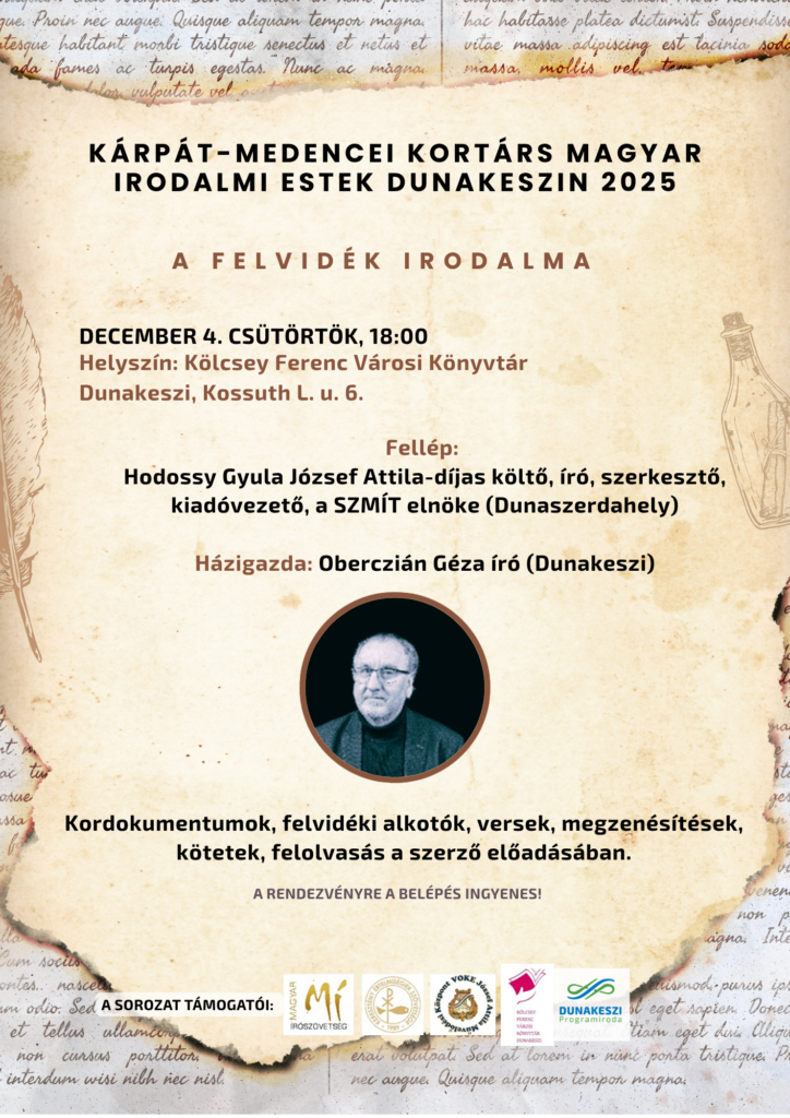 Csütörtök este a Dunakeszi Kölcsey Ferenc Városi Könyvtárban ismét egy színvonalas irodalmi estre várja a közönséget Oberczián Géza író, a Magyar Írószövetség választmányának tagja, Dunakeszi jeles polgára. A Kárpát-medencei kortárs magyar irodalmi estek Dunakeszin 2025 – Felvidék irodalma
