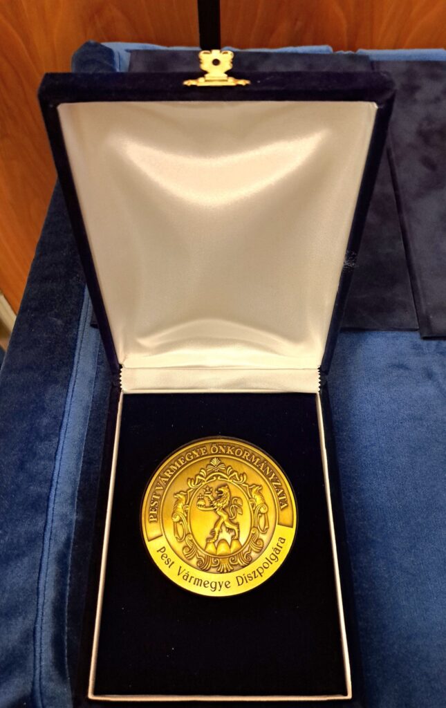 2025. december 5-én Pest Vármegye Közgyűlése által adományozott díszpolgári kitüntetést vehette át.