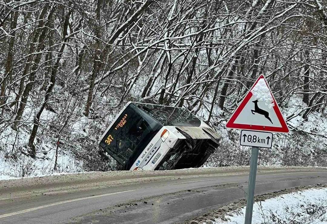 A Kisnémedi Község Facebook-oldalon megosztott fényképek szerint a Vác és Vácduka között menetrend szerint közlekedő autóbusz csúszott árokba.