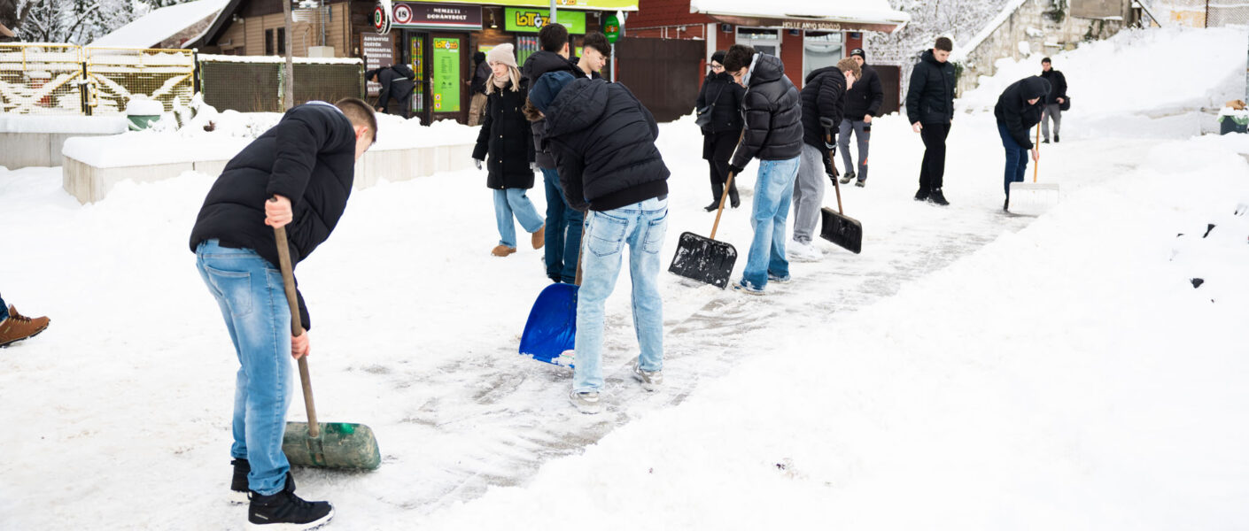 Szívmelengető látvány fogadta a Dunakeszin közlekedőket a Béke úton: fiatal diákok lapátolták a havat, hogy biztonságosabbá tegyék a közlekedést a városlakók számára. A Váci SzC Lányi Ferenc Technikum és Szakképző Iskola 18 tanulója nem először bizonyította, hogy a közösségért végzett önzetlen munka számukra természetes és fontos érték.