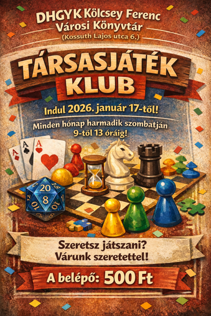 Városi társasjáték klubot indít a DHGYK Kölcsey Ferenc Városi Könyvtár Központi Könyvtárában, ahol rögtön egy újdonsággal indítanak.