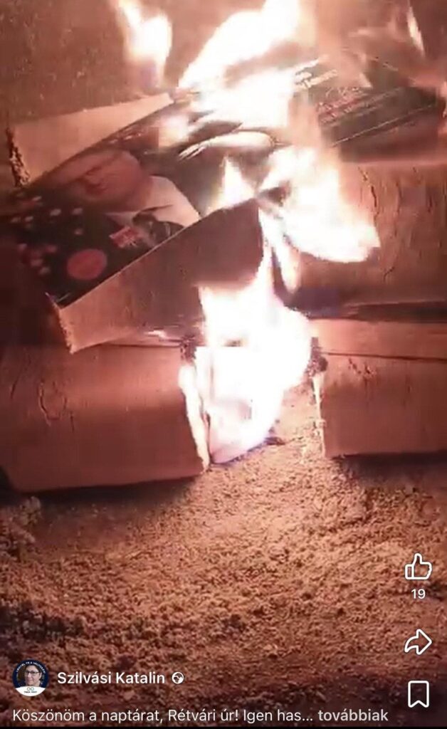 A nő videóra vette és a közösségi oldalán is megosztotta, ahogyan felgyújtotta a fotót. Rétvári Bence kifejtette, hogy a bejegyzés láttán több kommentelő is jelezte, hogy követik a példáját. A politikus a Hír TV híradójának azt is megerősítette, hogy a gyűlöletkeltő videót – amit azóta eltávolítottak az oldalról, – Szimon Renáta, Magyar Péter váci jelöltje is kedvelte a közösségi oldalon – írja a vaconline.hu.