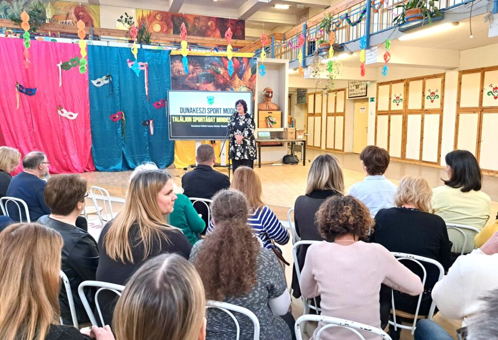 – Több gyakorlati bemutatóval készültünk. Először a Dunakeszi SportModellről hallhattak előadást vendégeink Nagy Bandor tolmácsolásában, aki a Városi Sportegyesület Dunakeszi képviseletében mutatta be a programot. Ismertette, hogy az általános iskolák 1–5. évfolyamán féléves váltásokkal milyen sportágakkal ismerkedhetnek meg a tanulók szervezett formában. Bízom benne, hogy a vendégek is felismerik, milyen óriási lehetőségeket rejt magában a SportModell.