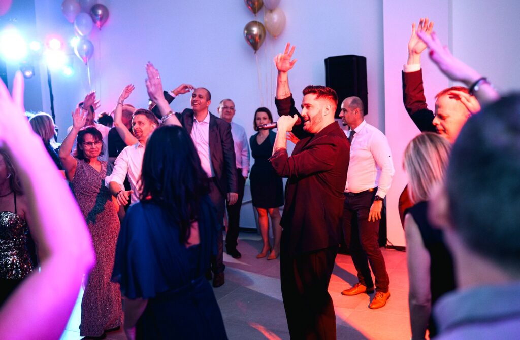 A hangulatot tovább fokozta Király Viktor fellépése: az énekes dalaira felpattantak a vendégek az asztaloktól, és pillanatok alatt megtelt a táncparkett. A közönség együtt énekelt és tapsolt, a tánc pedig – amihez a legjobb zeneszámokat DJ PITT biztosította – egészen hajnali 2 óráig tartott. Az utolsó „kemény magban” még 4–5 tanár is lelkesen és felszabadultan ropta. Jó volt látni a pedagógusokat ilyen oldott formában is.