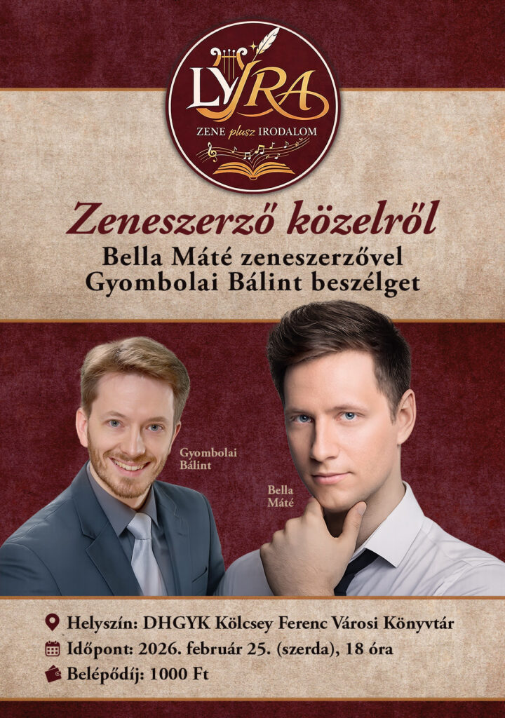 A „Zene plusz irodalom” előadássorozat 2026-ban összesen öt alkalommal jelentkezik. Azok a látogatók, akik mind az öt eseményen részt vesznek, az év végén könyvutalványban részesülnek.