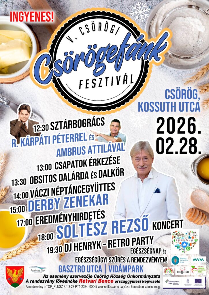 „Most szombaton csodás időben rendezzük meg az V. CSÖRÖGI CSÖRÖGEFÁNK FESZTIVÁLT!” – írja közösségi oldalán a rendezvény szervezője, Loksa Levente, aki garantálja a kiváló programokat, a fesztiválon induló csapatok pedig a finomabbnál finomabb csörögefánkok gazdag választékát.