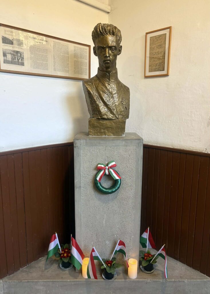 A nap zárásaként iskolánk képviselői elhelyezték a megemlékezés koszorúját a Petőfi-háznál a városi ünnepség keretében.
