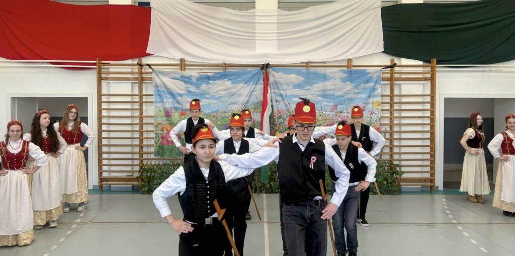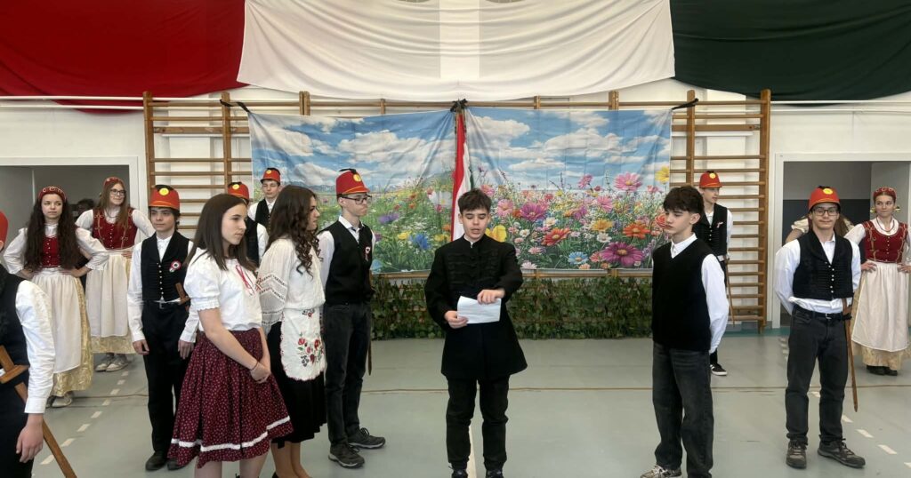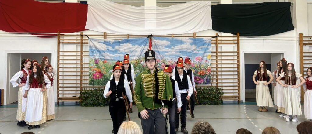 Március 13-án, pénteken 9 órakor kezdődött az ünnepi rendezvénysorozat az iskola tornatermében az ünnepélyes megnyitóval. Petrik Rita, az intézmény vezetője köszöntötte az önkormányzat képviseletében érkezett Inotay Gergely alpolgármester urat, a város iskoláinak megjelent igazgatóit, a kísérő tanárokat, a szülőket és a versenyző gyerekeket. Ezután együtt megtekintették a felső tagozatosok hangulatos, a 178 ével ezelőtti forradalom és szabadságharc névtelen hőseire emlékező, a kor hangulatát verssekkel, dalokkal és táncokkal megidéző műsorát. A programot Szabó Mónika tanárnő álmodta színpadra. A gyermekek olyan hittel és lelkesedéssel adták át a szabadságharc névtelen hőseinek önfeláldozó életérzését, hogy előadásuk meghatott és magával ragadott minden jelenlévőt.