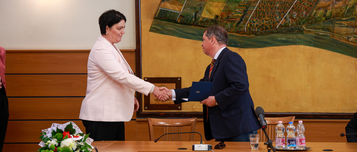 Dióssi Csaba polgármester gratulál dr. Miskolczi Orsolyának