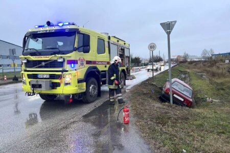 A késő délutáni órákban, az esős, nyirkos időben árokba csúszott egy személyautó Dunakeszin, a Pallag úton.